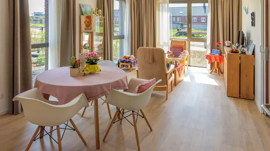 Op de begane grond bevinden zich 27 appartementen, vergezeld van drie gezamenlijke huiskamers waar bewoners elkaar kunnen ontmoeten. Op de eerste verdieping zijn er nog eens 27 appartementen, samen met drie huiskamers met een balkon. Daarnaast beschikt deze nieuwe locatie over een prachtige eigen tuin, waar bewoners in alle rust kunnen ontspannen.